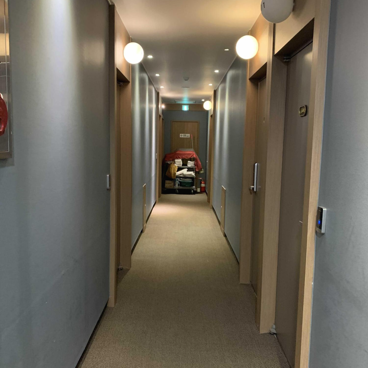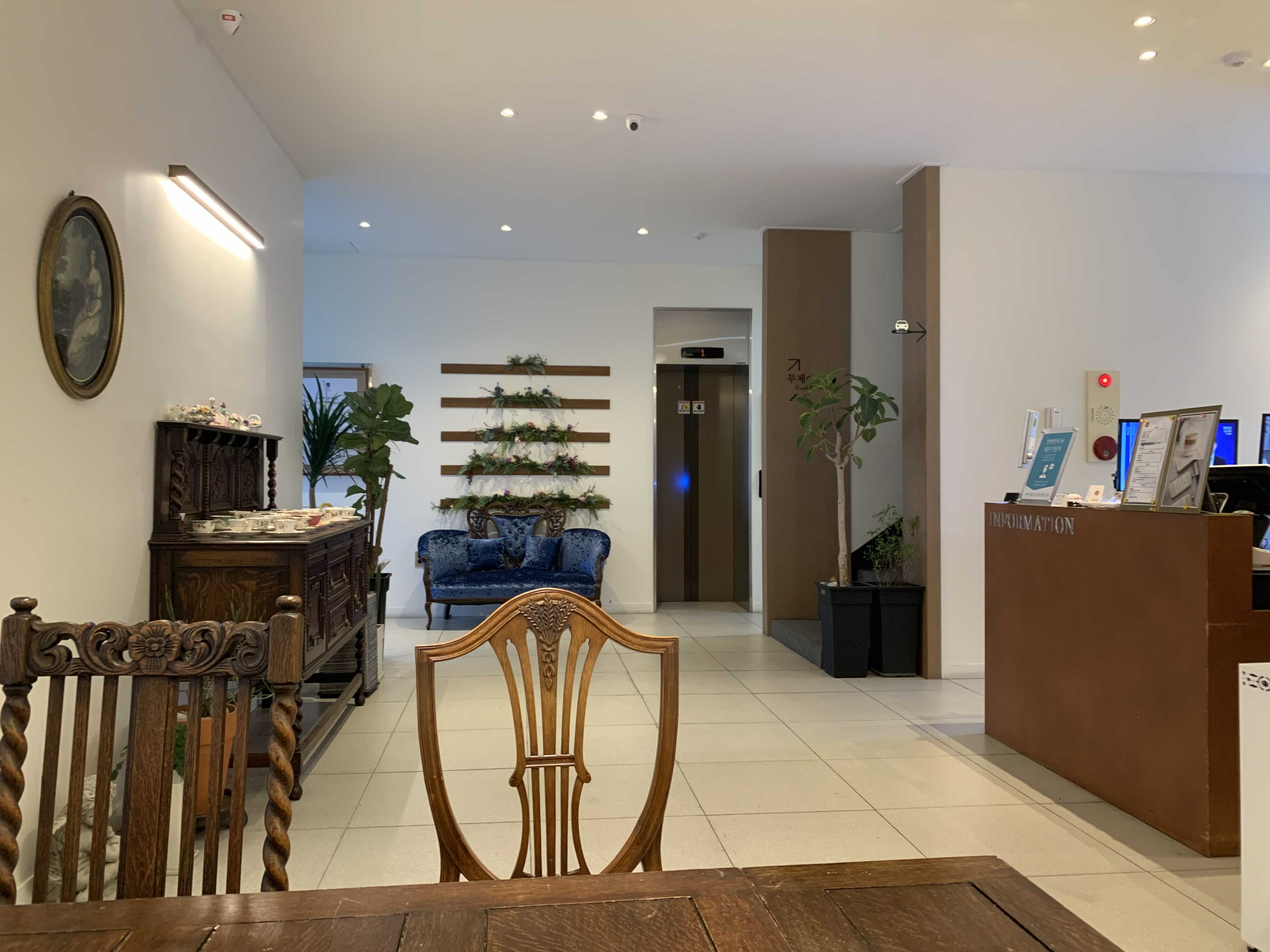 1층에는 카페가 있고 2층부터 호텔이랍니다. 카페와 호텔의 프런트는 겸용이었고 직원분 한 명이 프런트에 계셨답니다. 북킹닷컴에서 예약을 했고 1박에 70,000원을 주고 묵었는데, 당일에 북킹닷컴에 들어가 보니 50,000원까지 내려갔더라고요. 원래 남는 객실이 있으면 당일에 가격이 내려가서 그런 것 같았답니다. 아래 사진은 무제여관 로비의 모습입니다. 한 층에는 객실이 5개 정도 밖에 없었답니다. 복도 끝에 청소 수레가 보여서 보기에 좋지는 않았답니다.