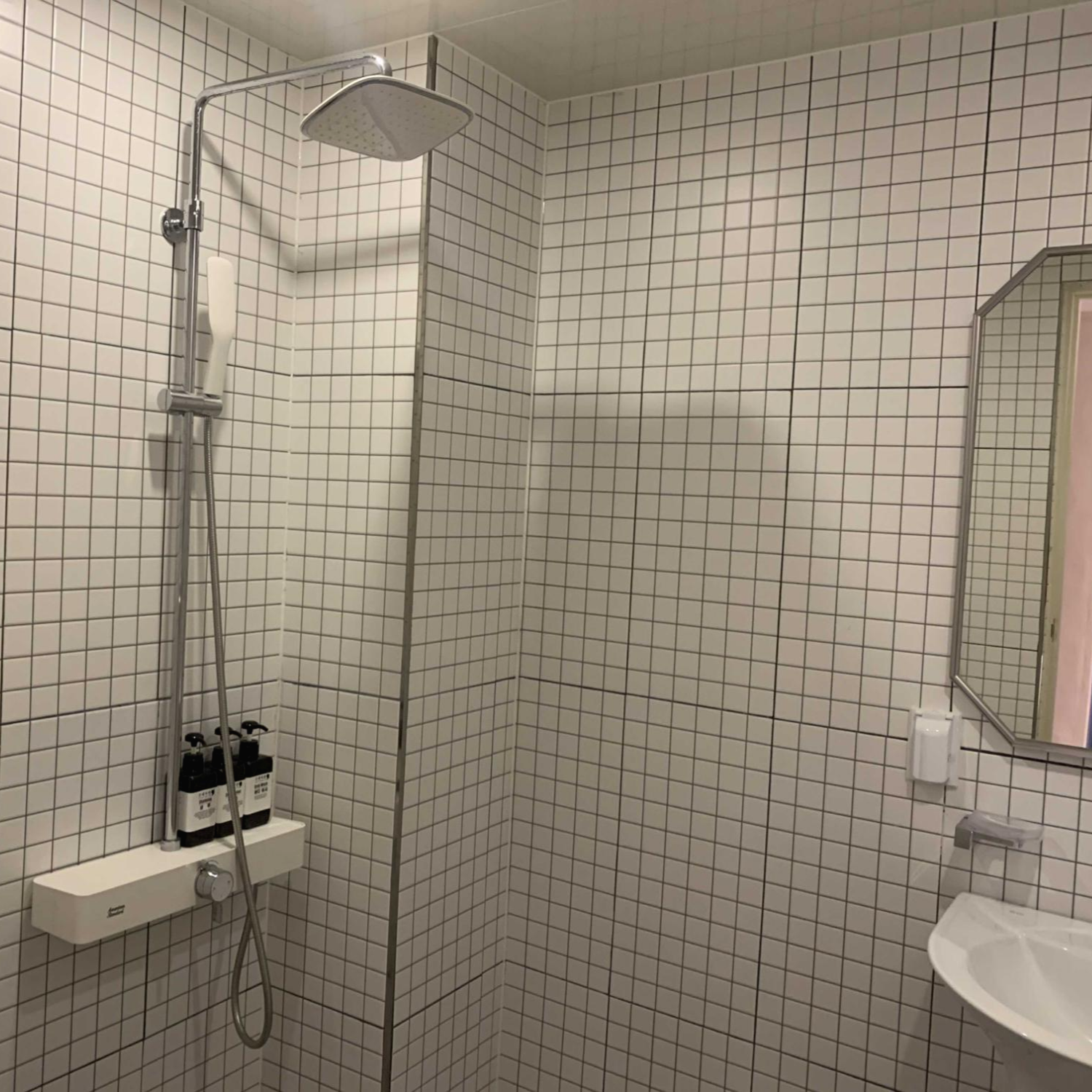 무제여관 화장실의 모습입니다. 일반 샤워기와 해바라기 샤워기가 갖추어져 있고, 샴푸, 린스, 바디샤워가 구비되어 있답니다. 용품들은 다 향기도 좋고 괜찮았습니다.